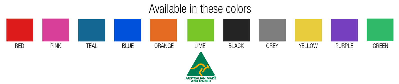 - Colors available: Blue, Green, Lime, Pink, Purple, Red, Teal, Yellow, Black, Grey and Orange.